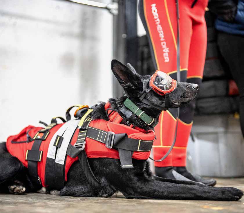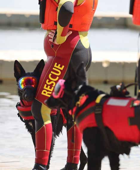 Barnhard and Isaac teach canine fitness to other working dogs to keep them in optimal condition. In addition to service work, they are training in search-and-rescue and water rescue. Isaac is also working towards certification as a K-9 lifeguard by the American Academy of Canine Water Rescue.
