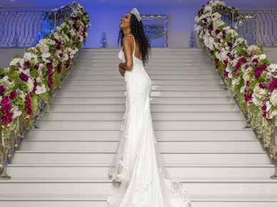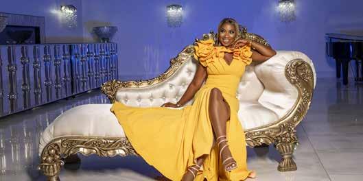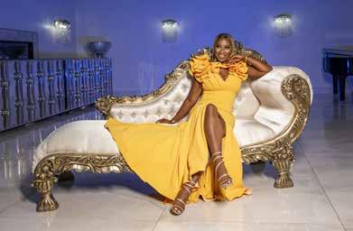 Agbakoba offers custom designs in addition to off-the-rack options at her store at Westfield Montgomery Mall. She carries pantsuits, kimonos, accessories, and more, along with her signature evening gowns. The boutique stands out for the quality of its materials, a welcome contrast to the inventory of department stores nowadays. While Agbakoba loves satin, Chantilly lace, and hand beading, she always designs with her clients in mind. “We want to make sure that we give our clients what they want, but in a way that they will step out and still stand out and make a statement in whatever crowd that they are in,” she says. Many customers recognize a sample of Agbakoba’s “Karen” gown on display, the embellished, head-turning number Bravo star Karen Huger wore on her vow renewal episode of The Real Housewives of Potomac.