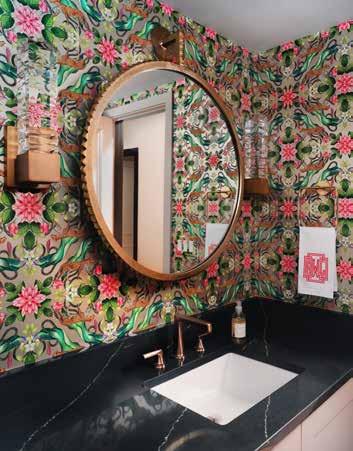 Jenn Cameron, Lead Designer at Jenn Cameron Interiors, encourages clients to use color and pattern in their homes. One of the easiest places to do so is in the powder room, where she recommends trying a striking wall color or a unique and vibrant wallpaper. She assures hesitant clients that with the right lighting, proper wallpaper scale, and neutral pops, it’s the perfect space to think creatively.