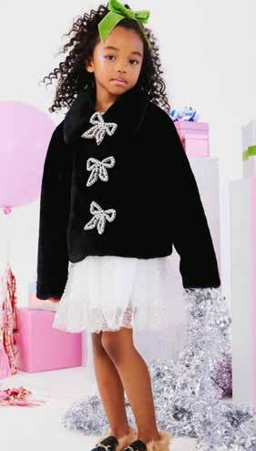 Add a touch of luxury to your winter wardrobe with this soft plush jacket featuring crystal bow clasps and a cozy fleece lining. It’s the perfect finishing layer for your cold-weather look.