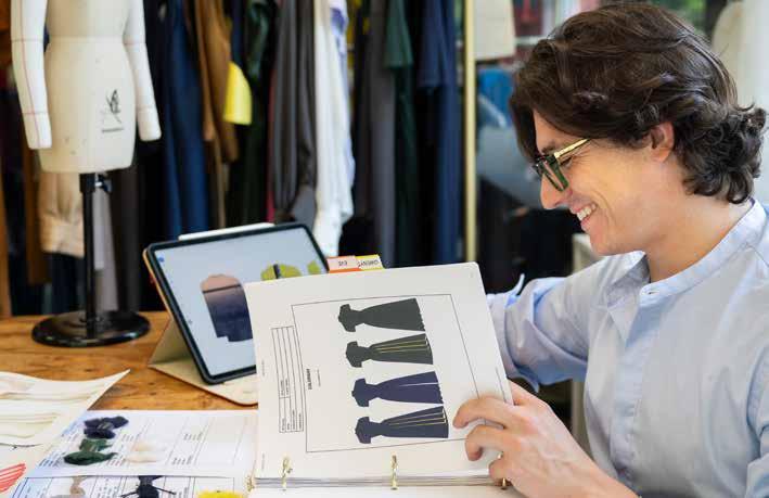 that’s all really fine material: really fine cotton, really fine silk, and really fine viscose. We also use some tweeds, baby alpaca and cashmere. We've only made 20 of each piece, so there's an exclusivity to it. The other side of our business is our bespoke and made to order, where anything you like you can have a custom made in your size and color choice. If you dream up a gown – “Oh, I love this Christian Dior from the 50s” - we use that as inspiration, and I'll draw something new for you.