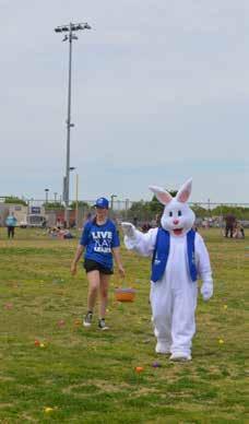 1: The Easter Bunny greeting the crowd at the Egg Hunt. 2: The rush to collect eggs at the Egg hunt at the Spring into QC event. 3: Queen Creek police officers at their booth at the Spring into QC event. 4: The Women's Rodeo at Roots n' Boots. 5: Pinal County booth at the Spring into QC event. 6: Pancake Breakfast event at the Equestrian Center in Queen Creek. 7: Rodeo event at Roots n' Boots.