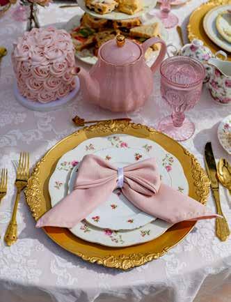 Sitting with a view of the English garden at the Queen Creek Botanical Gardens is especially suited to hold a traditional tea party courtesy of Desert Tea Party Rentals. Owner, Rebekah, puts together a stunning display with careful attention to coordinating napkins folded into bows, delicate china on gold chargers, alongside roses and tempting treats. It is a scene plucked out of a Jane Austen novel or an episode of Downton Abbey and dropped into Queen Creek.