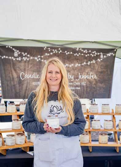 Jennifer and her family have made Queen Creek their home since 2005, and although it started small, she says she has enjoyed watching it grow. Something of that small town spirit and hand made craft can be seen in Jennifer's work. Her business, Candle Creations by Jennifer, began in 2017. She produces candles that come in various containers from 'Apothecary' to 'Farmhouse' and 'Jelly' jars. The scents can be simple and nostalgic like 'Banana Bread' or 'Strawberry Shortcake'. However, she also has more original scents like 'Volcano Beach' that has tones of citrus and pineapple, evoking the tropical aromas of Hawaii.