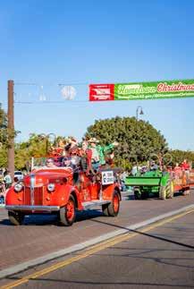 1: Crush Kickball float for the Christmas parade. 2: Publisher Jackson York and his wife Jayleen along with Editor Florence Daniels and daughter Emilia. 3: Shannon and David Gillette 4: A little boy waiting for the Hometown Christmas Parade. 5: Santa Clause waving to crowds at the Queen Creek Hometown Parade. 6: Roots N' Boots represented at the Christmas Parade. 7: The Town Council riding in a vintage fire truck for the parade.