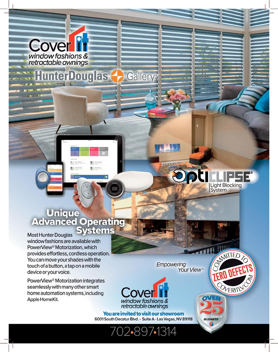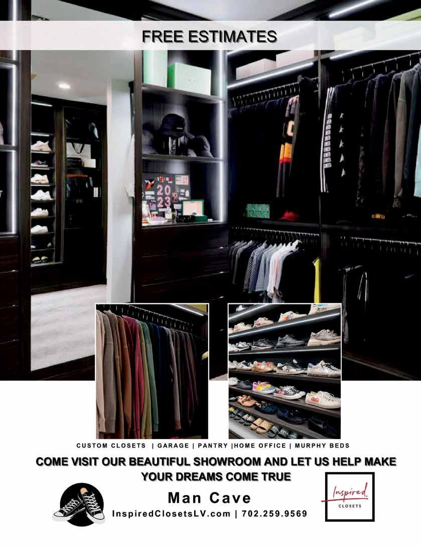 Our tax strategies, avoid taxes in the most efficient manner possible. We have spent countless hours and hundreds of thousands of dollars to develop tax strategies to help our clients avoid taxes by every means the law permits. (616) 836-5366 www.charitable-planning.com 7347 Peace Rose Street, Las Vegas, Nevada 89131 Our Strategies will: • Provide Significant Tax Deductions • Produce a Tax Free Income Stream • Completely Creditor Protect Your Assets • Provide Significant Legacy Planning for Future Generations • Contribute Significant Donations to the Charities YOU Care About RICHARD A. KRUITHOFF CEXP / Charitable Planning Tax Consultant Helen K Vasquez 5540 S Fort Apache Rd., suite 110 Las Vegas, Nevada 89148 (702) 629-5625 www.hvasquezagency.com American Family Mutual Insurance Company, S.I. & its Operating Companies, 6000 American Parkway, Madison, WI 53783 ©2021 19714 – Rev. 12/21 – 16934633 Auto Insurance | Motorcycles | Boats | Campers/Trailers Personal Umbrellas Homes | Renters | Condos | Rental Property BUSINESS OR COMMERCIAL INSURANCE: Any Business | Subcontractors Insurance General Liability Workers Composition Property Building Insurance Tenant Liability and Insurance for their business Commercial Umbrellas. Las Vegas’ largest exotic and classic car dealership. - Indoor showroom with 70+ vehicles. - Showroom is available for special events. - Consignment and financing available. 7770 Dean Martin Dr Suite 301 Las Vegas, NV 89139 www.celebritycars.com 702-818-1031 71 | CITYLIFESTYLE.COM/REDROCK JUNE 2023