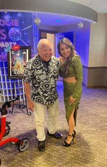1: Red Rock Pointe Retirement Community hosted the Seniors Global Network 2: George L. also mingled with the cast. 3: Dancing Queens cast: Rickie Topacio, Joy Roxas, Myka Roxas, Sina Foley, and Goldie Mabaquiao. 4: Residents Tom and Dar G. are always happy to hear live music. 5: The event brought its attendees “back to the 70s” with a Disco Dance Party. 6: Post show, residents, such as Norman I, enjoyed a Meet & Greet with the cast. 7: Resident Pamela F. sings along while the rest of the group sang backup. Photography courtesy of Red Rock Pointe Retirement Community