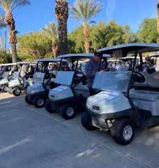 1: Society for Information Management (SIM) International hosted a golf event to raise money for local college students. 2: Golf carts ready to go at Siena Golf Club for the fundraiser sponsored by Link Technologies. 3: Bob Leek, Mike Lovelace, and Chelsey Bonilla pose together at the event’s raffle station. Photography by Vanessa Schultz