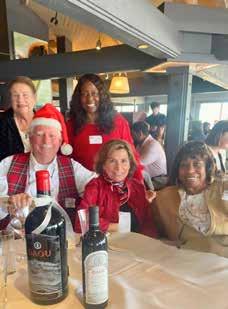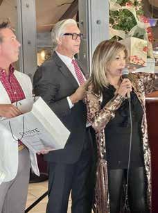 Estate Properties’ Annual Holiday Brunch. 15: Estate Properties Management Team—James, CEO; John, CTO; and Diane, CMO—announce the door prize winners. 16: Jim Ghannadi wins the 1,176 piece model house assembled and donated by RBCL. 17: Kelly Evans snuggles up with a Santa gnome for a festive moment. 18: Darlene Jones, GiGi Griffin, and her husband Cor Van Diepen enjoy the afternoon together. 19: Michael Foster, Nadia Foster, and Ronnie Ratzlaff (seated), with Maureen Megowan and DeBorah Rugley Wiley. 20: Dede Hsu, Anowheh Moghaddam, and Dri Barron soak up the brunch festivities. 21: Lynn Lord, Michele Nelson, Joanne Galin, Amy Kim White, and Nancy Hernandez.