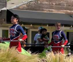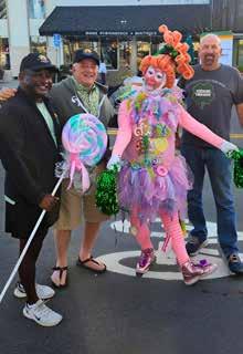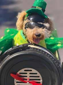 Highlights from St. Patrick’s Day Festivities: 5K in Redondo Beach & Parade in Hermosa Beach. 8: Runners take off at the start of the 5K race in the Riviera Village. 9: Strollers. Dogs. Kids. Everyone’s having some fun participating in the 5K. 10: L-R: Councilman Castle, Mayor Light, Torrance Memorial Medical Center's Lolly Pop, and Councilman Waller. 11: Redondo Union High School Band and Guard perform at the parade. 12: A spirited cyclist engages with the crowd, handing out bicycle bells along the parade route. 13: The Beach Cities Shriners, donning their distinctive red fezzes, sail through the parade. 14: Autumn, all decked out for St. Patrick's Day, is "Best in Show" in parade-goers' hearts.