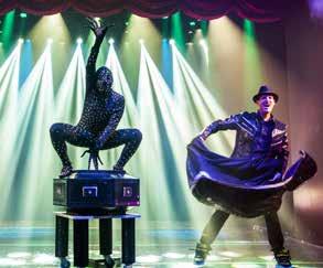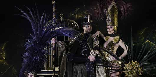 Every piece of the production is of its own design. They choose the music, cast the dancers, imagine the choreography, find the magicians, work on the pyrotechnics and lighting effects, and even act in the shows. Lord Caruso hand makes every costume you see on stage—over 100 in all.