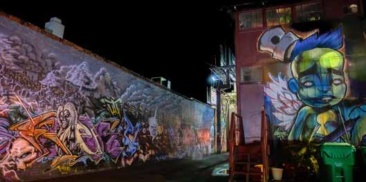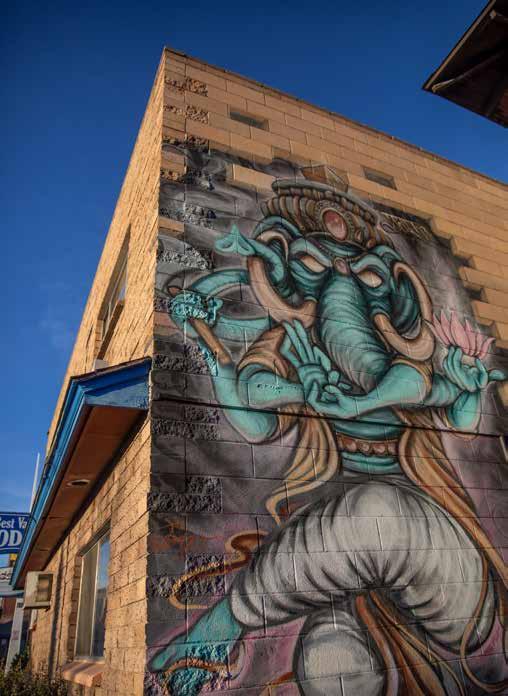While some murals stand out like the vibrant orange flowers in local muralist Erik Burke’s “Back In The Day Is Now” on the south facing wall of Kramer’s in Midtown or the vast abstracts of the Reno City Hall parking garage (pictured), others take a bit more work to see. The Ganesha mural in Midtown Reno, often described as a colorful mandala, is located in an alley near the old Recycled Records, generally north of Moran