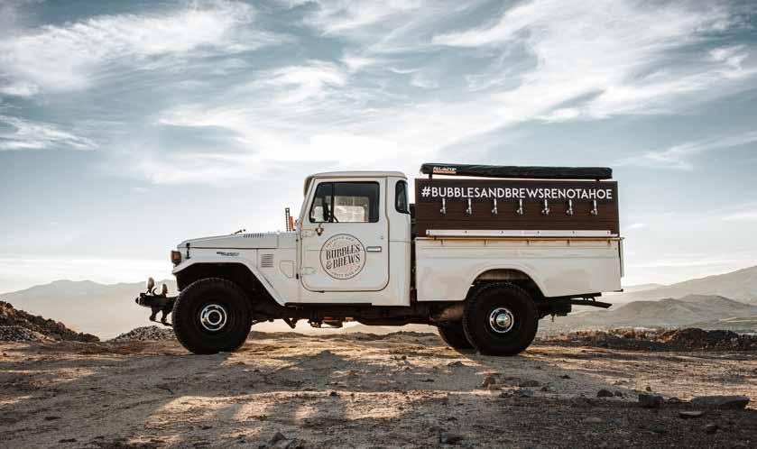 Our truck (which Johnson lovingly calls “she”) is part of the sparkle, and we bring it! People book her because they have some memories or connection with a similar truck or love that she is one of a kind. Bubbles and Brews is part of a franchise, and most of the other locations use Italian Piaggio Apes, (a three-wheeled commercial vehicle) but I received special permission to refurbish the truck because she perfectly fits the rugged, cute, and sexy vibe of Reno Tahoe.