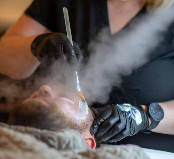 Pearce laments that facials aren’t just for women. “Because everyone has skin and everyone ages.” Men’s facials are offered at both Dolce Vita Wellness Spa and Plumb + Pine. At Plumb + Pine, “The men’s facial includes a double cleanse, exfoliate, mask and massage, and finishing products,” says Pearce. “Results with relaxation built in.”