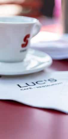 Luc’s front patio has a hospitable and homey feel to it, the Parisian flair eminent the moment you take a seat on one of their happy red chairs. Airy and open, this delightful patio makes for the perfect meeting spot for friends to catch up with one another.