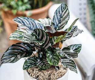 The Calathea Ornata has a ton of varieties and is a very artistic plant. This one is a little finicky and temperamental, so it can take a little bit of a green thumb to care for them. Faucet water can be hard on these plants, so they prefer distilled water. If brown tips appear, this means it is being over-watered or the water is hard. They like medium to bright indirect light. They can grow to 1 ½ feet to 2 feet maximum.