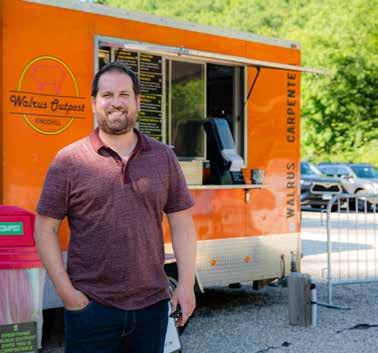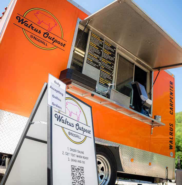go to breweries,” says Farrell. “And we knew that Nod Hill was a great brewery to go to right out of the gate, so I had confidence in getting that trailer.” After Walrus spent a couple summers visiting Nod Hill for special events, Jeff Taibe (of Taproot in South Norwalk), who was running the resident Nod Hill food truck, decided he wanted to step away to work on other projects. It was an obvious fit for Kaye to ask Walrus Alley to simply take up permanent residence, offering their signature Southern fare both at the truck and as Nod Hill’s catering partner. “It actually didn’t take that much thinking,” according to Farrell. “It was like yeah … yeah, we should do that.”