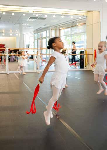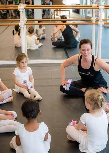 Piantaggini stresses that the Conservatory is both a rigorous dance program, and a place where everyone is welcome. “It’s a real misnomer that ballet is for one type,” Piantaggini says. “Absolutely not true. We train everybody and we like to think we have a lot of fun doing it.” You can feel that energy with her 3 and 4-yearolds in class that starts with gentle exercises, builds up to a high-energy obstacle course, and relaxes back into calm. Kids leave the studio bouncing and happy, the seeds of dance firmly planted and ready to grow.