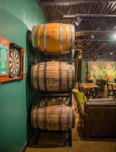Nod Hill quickly became known for its craft beers and laid-back atmosphere. They came out of the gate with a full flight of offerings including hearty IPAs, flavorful ales, and limited seasonal runs. The tap room up front is cozy, where rustic chandeliers hang over pine tables, and the warm wood gives up the spotlight to the vivid green cabinets surrounding the bar. “What I like that stands out about Nod Hill specifically,” says Farrell, “is a lot of breweries are these industrial-type spaces, where Dave’s aesthetic is more - this is a comfortable place to be. Oh yeah, and we make beer.” The doors of the tap room take you past the brewing equipment to an event space that can hold up to 100 people. Even for a large space it feels cozy, with large beer barrels lining a dark green wall, another bar, plenty of seating, and a small stage.