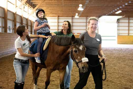 those with special needs, smack in the middle of horse country. With all the equine properties in the area, none of them incorporate hippotherapy because everything that comes with owning a medical facility and a farm is infrastructure-heavy. “It’s expensive and it takes the right team, and after three years we have a rock-solid team that’s able to deliver those components.” It takes a village of 20 staff and a roster of over 65 volunteers to make this magic happen.