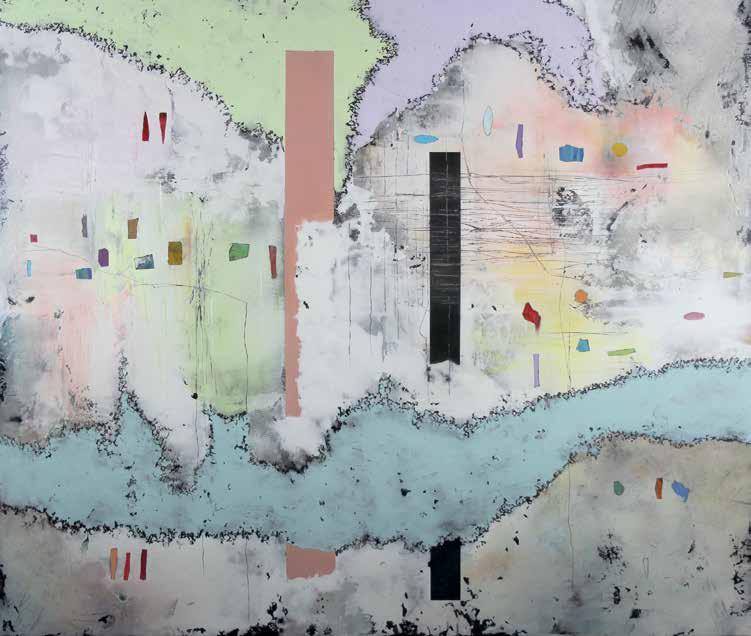 ESTES Tall Tales , 2023, mixed media on panel, 44” x 48”