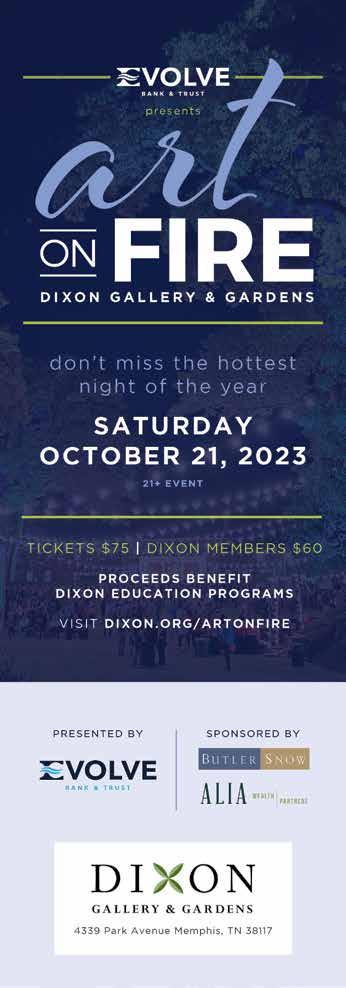 WEDDING & EVENT TRANSPORTATION | CORPORATE DRIVING | VALET PARKING HOME MAINTENANCE | ERRANDS | LAWN SERVICES | FOOTBALL GAMES Premiere Driving, Transportation & Valet Parking for Your Events and Venues Call for Pricing & Scheduling 901-275-8527 ◆ 4guardianservices.com consult • design • build ericgoodepools.com Photography by Bob Bayne POOLS 901.216.4771 · info@thestudymemphis.com 600 South Perkins Rd. Memphis, TN 38117 Open to the Public M & F Appointment Only · T-TH 10:00 - 4:00 CURATED DESIGNER RESOURCES FABRIC · TRIM · WALLCOVERING by HARDY & WINSTON, Inc. 53 | CITYLIFESTYLE.COM/RIVERCITY OCTOBER 2023
