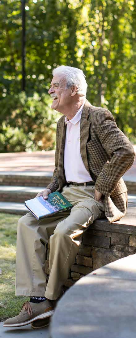 months to complete. “Getting started can be daunting,” he admits. “It’s a little like that feeling we had as small children when we desperately wanted to be in the cold pool on a hot day, but cringed at the thought of that first jump.” Once immersed, he rarely struggles with writer’s block. When problems arise, he walks. “Talking development and scenes through out loud as I walk can bring fresh perspectives and objectivity,” he says. “My neighborhood probably wonders about the guy walking down the street alone, apparently engaged in full-out conversation with no discernible earpods.”