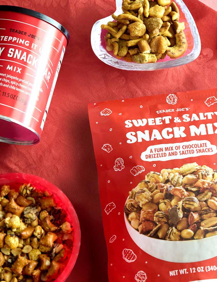 On the snack front, balance homemade charm with easy favorites. Chocolate Candy Heart Bark is a crowdpleaser. The melted chocolate swirled with conversation hearts delivers nostalgia with a homemade twist. Pair it with Trader Joe’s Sweet and Salty Snack Mix for those who love contrast, and the Stepping It Up Spicy Snack Mix for guests who crave a little heat. Together, they create a grazing table that hits every craving without requiring hours in the kitchen.