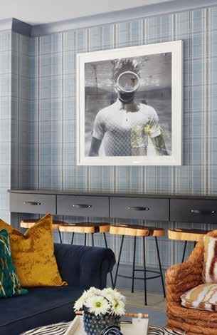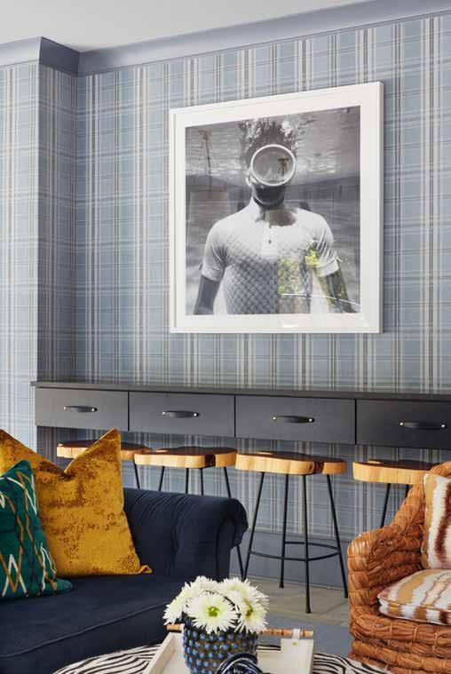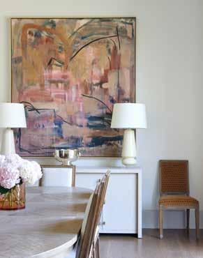 with dressy and casual. Said another way, let’s not make it look like a showroom. Vintage and antique pieces anchor a space. Pattern play, scale and proportion are always considered. I might start with a rich, chocolate broad stripe on upholstery but also bring in a chintzy floral. Things aren’t always in the same lane. When thinking about textures it’s not just fabric. I think about the relationship that natural materials can have between raffia, burl wood or stone.