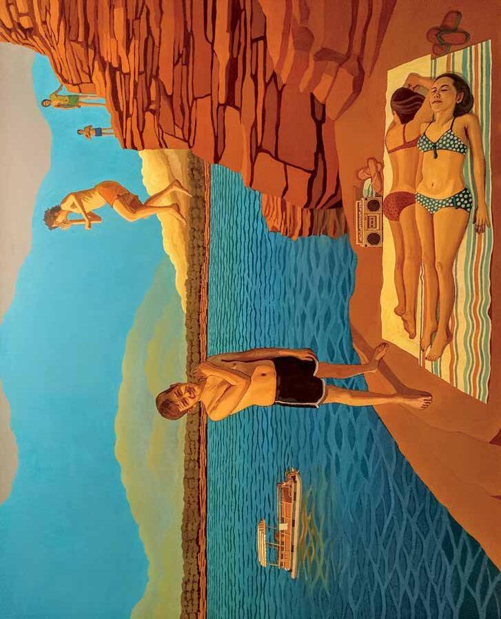 Day at Damsite , 2024, oil on panel, 48 x 60”