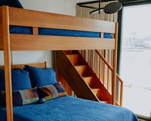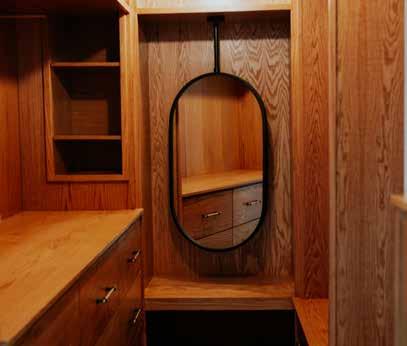 A custom closet in the primary suite feels like house boat living. There are nautical subtleties throughout the home.