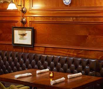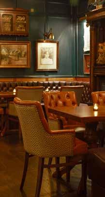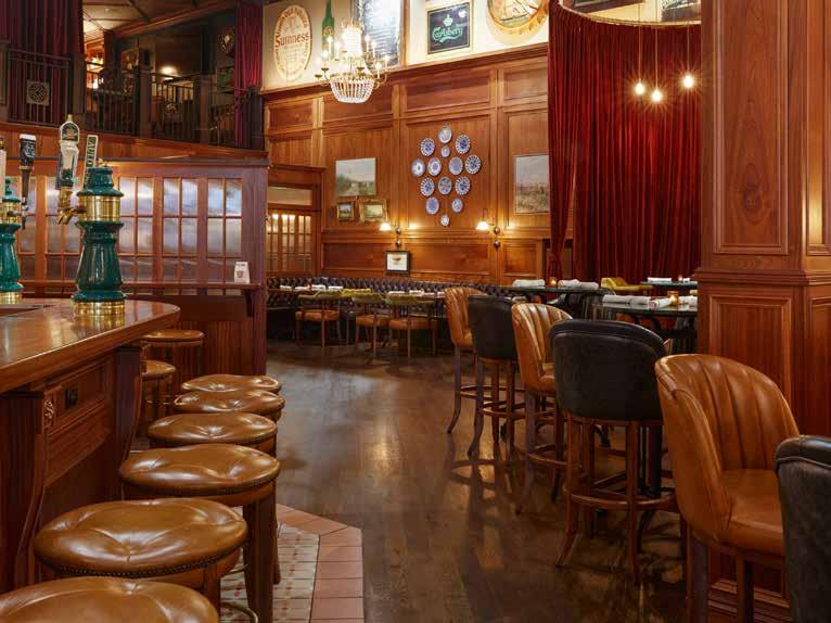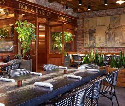 The moment you walk through the doors, you are transported to Dublin. The entry leads to a patiolike dining area with a fireplace and beautiful stonework that encourages leisurely lunches. As you step into the main dining room, you can’t help but look up at the soaring 38-foot ceilings and carefully curated Irish décor. From the start, Bog & Barley was DJ’s dream project. “I wanted it to be something very special. It was a bucket list project.”