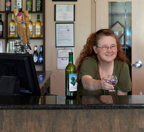 Open Wednesdays, Thursdays and Sundays from 12 to 5 p.m. and from 12 to 7 p.m. on Fridays and Saturdays, DBW boasts a vast array of wine, beer and cider to taste and enjoy. The wine offerings include light, dry white wines similar in taste to sauvignon blanc, dry reds similar to pinot noir, semi-dry whites and rosés as well as fruit-forward sweet wines. The wines are blended on-site starting in the wine tasting laboratory, where Jerry and his daughter Angela tinker with the recipes. Next, the juice is stored in large vats, where it continues the fermentation process. Lastly, the wine is bottled, corked, sealed and labeled in the facility’s modern bottling room.