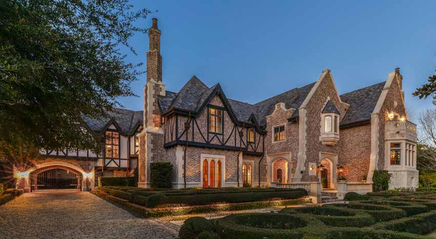 Discover an enchanting River Oaks estate reminiscent of English countryside castles. Nestled on over 2 acres, this romantic sanctuary boasts finely proportioned interiors, limestone-carved stone arches, and Cotswold-imported flooring.