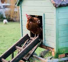 run is a good option for a coop. The outdoor run should be fully enclosed if you have predators like hawks or owls nearby. Ideally, coops are slightly elevated off the ground to prevent flooding and have windows on each side, enough nest boxes to allow several chickens to nest simultaneously, outlets for lighting, fans if they’re needed, air inlets or ventilation holes on the roof, and a concrete floor treated with a pet-safe waterproof coating that allows for easy cleaning and drainage.