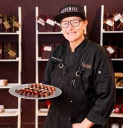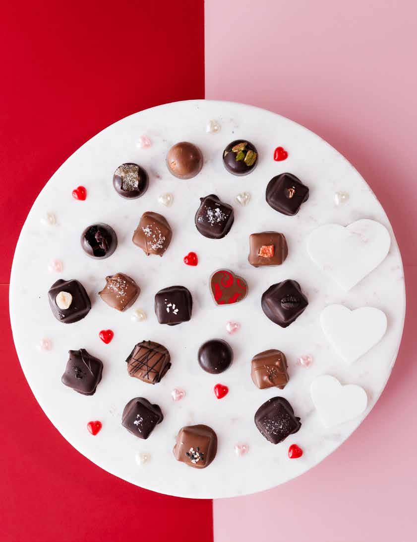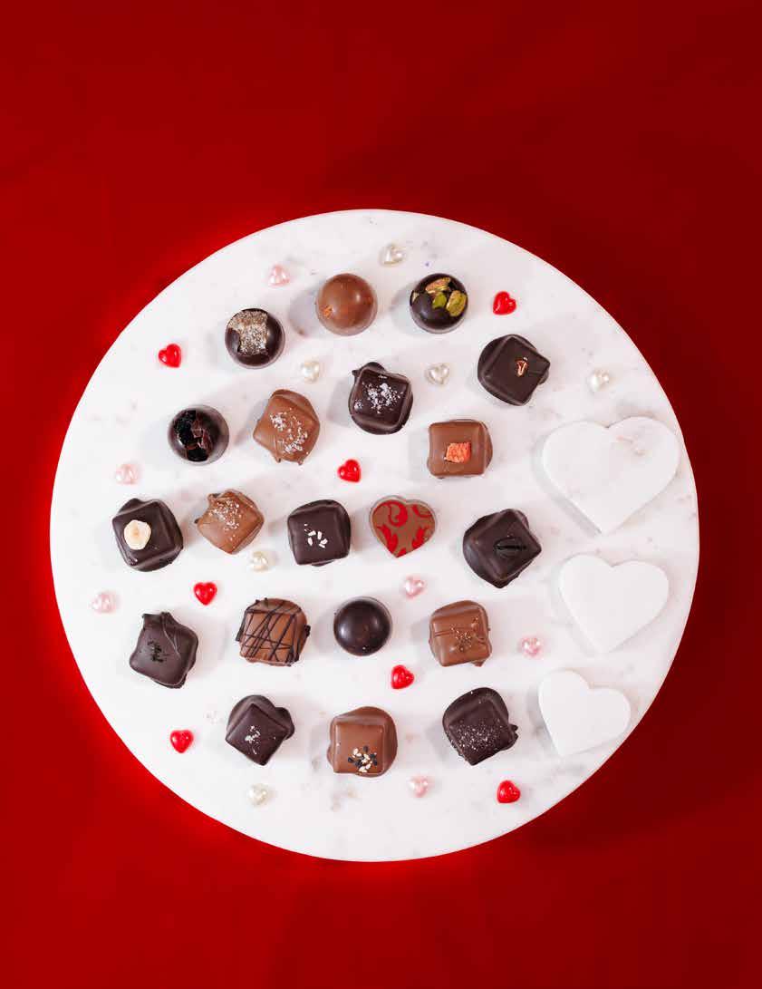 Hedonist and Laughing Gull showcase modern craft through filled truffles, chocolate-dipped fruit and bark, drinking chocolate, and vegan bars. Laughing Gull touts handmade confections, bold flavor layering, and transparency in sourcing, alongside chocolate classes, tastings, and workshops to share their craft with the community. Founder Lindsay Tarnoff says their Highland Park truffles, featuring local magnolia and lilacs, and lilac-flavored chocolates are always a hit, adding that “Our chocolate is a disruptor in a way” with its unique texture and flavors.