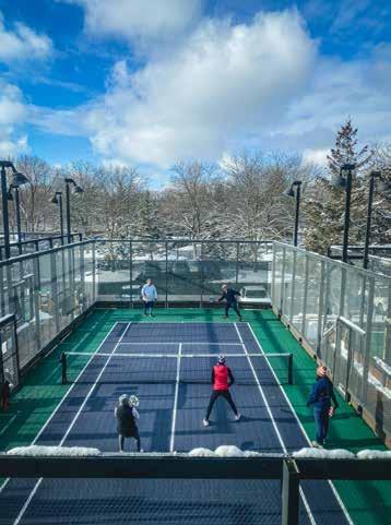 Kernan teaches many of TCR’s beginner platform tennis classes, and she’s far from alone in her enthusiasm. The club has about 350 members who play on the outdoor platform courts—often called “paddle huts”—during the winter months. The sport is so popular that TCR now hosts weekly Paddle Tennis Happy Hour events, pairing games with refreshments in the clubhouse.