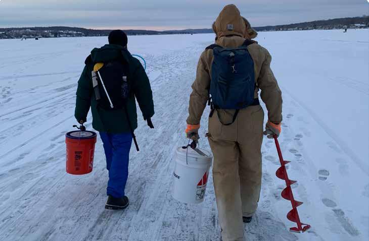 “It’s a huge tradition passed down from parent to child,” Baker says, describing the culture of ice fishing in the greater Rochester area. “Finding the best spots to fish is like chasing a great sunset.”