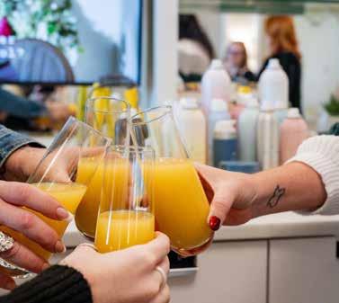 Mix up mimosas or serve coffee with flavored syrups and whipped cream for a café vibe. Then, snuggle up in bed and watch a favorite movie or TV series.