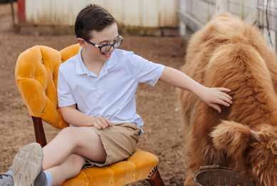 “All the baby cows were tagged with a fourdigit number except for this cow, whose number was 21,” Amanda recounts, adding that Down syndrome is three copies of the twenty-first chromosome. When she explained the significance to the farmer, he teared up and not only let Eli bottle-feed the calf but also let him write his name on the calf’s tag.