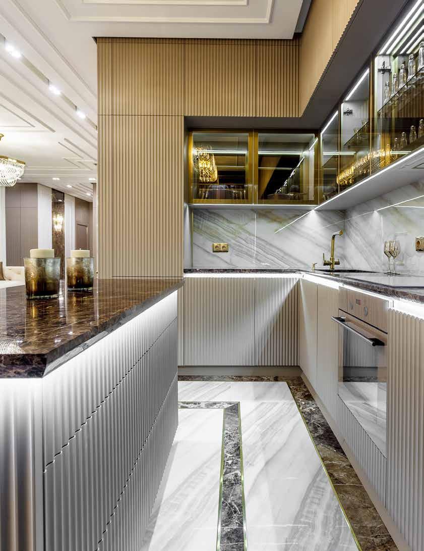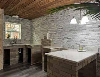 illuminated from beneath to sophisticated marbles such as Carrara or Calacatta, there is something for every taste. Finishes can range from polished to deeply leathered, and man-made quartz may offer the most luxurious patterns in an accessible entry point for any budget, with the added bonus of simple upkeep. The choices are seemingly endless, and the value is undeniable.