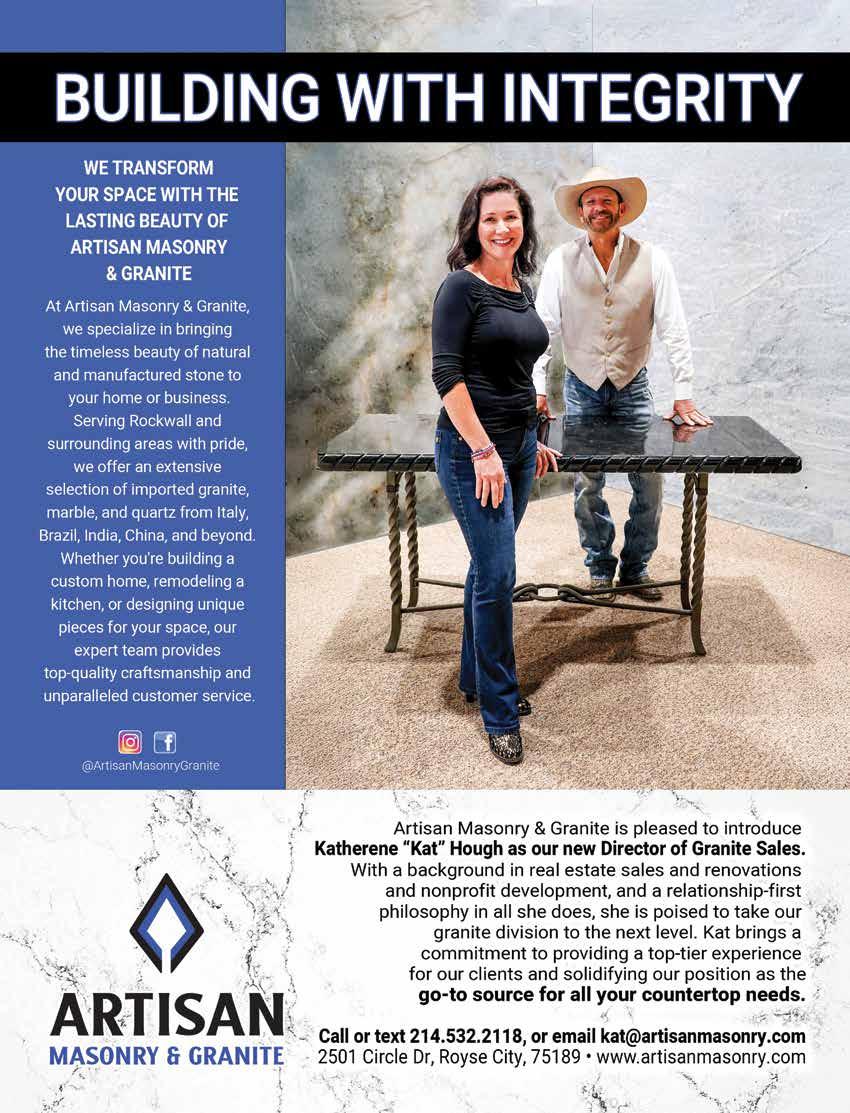 Artisan Masonry & Granite LLC has been serving Rockwall County and the surrounding areas for over 30 years with a commitment to top-tier service and quality work that stands the test of time. Services range from custom brick, limestone, stucco, insulated concrete forms, and rain screen panel systems to stone countertops and other renovation services.