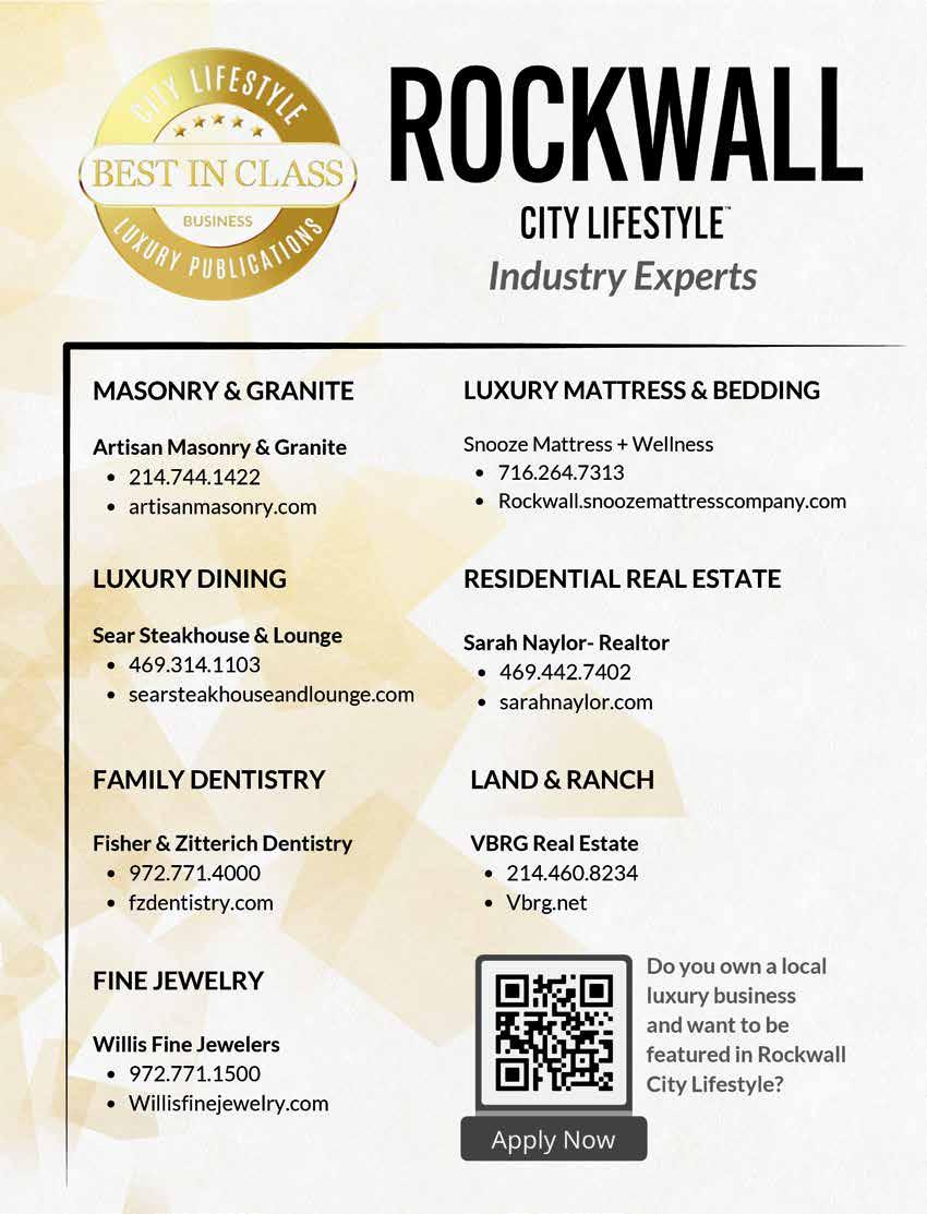 Celebrate style and service at this elegant spring luncheon and fashion show benefiting Meals on Wheels Senior Services. Join community leaders and changemakers as they champion a future where every senior’s story continues with dignity and care. Visit www.rockwallmealsonwheels.org/ event/spring-luncheon/ to learn more about this meaningful afternoon of fashion and philanthropy.
