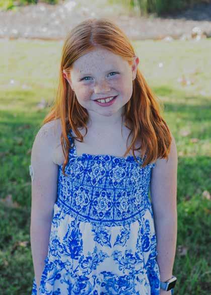 Sutton loves cheerleading and golf, though cheer is her favorite. She was diagnosed at five years old and remembers the day saying, “My stomach hurt really bad. Now, when I’m low [glucose], some things taste really sour.” For Sutton, one of the most difficult things about living with T1D is explaining her devices. She wears her continuous glucose monitor [CGM] and a watch, which sends her and her caregivers alerts when needed. “People are always concerned about me,” she says. “When little kids ask me about it [CGM], I say it’s a special bandaid, but when older kids ask me, I’ll actually explain it.”