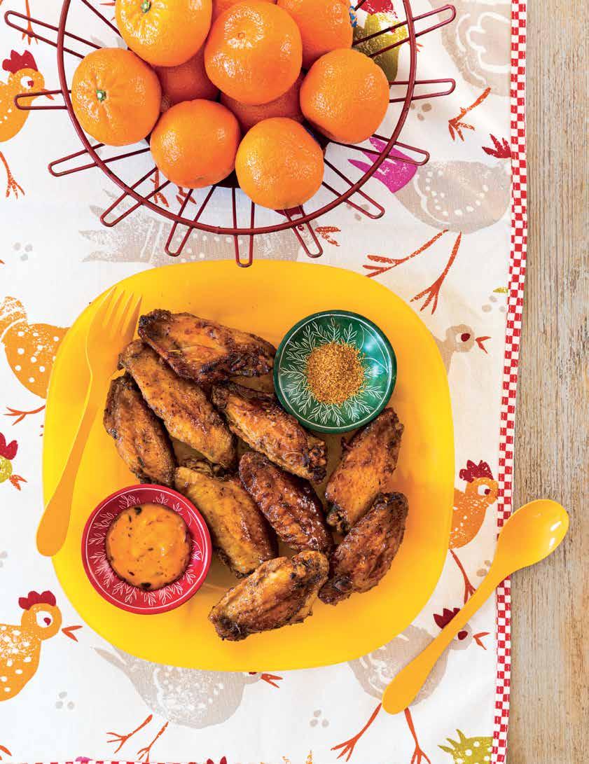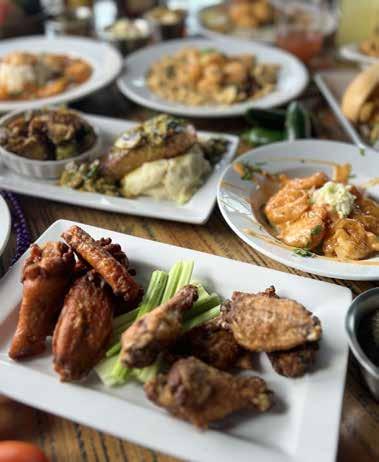 RIGHT: BayouQ’s famous smoked chicken wings on center stage