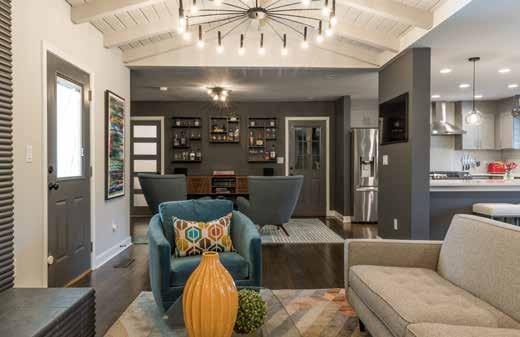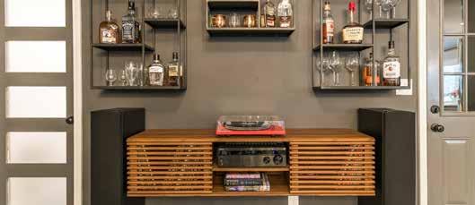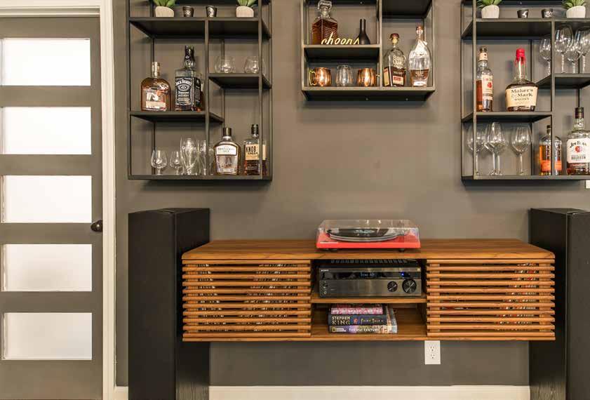 Music, lighting, surround sound, and what’s on tap. You are creating a retreat at home. What do you stock and keep fresh? If you consider placing mirror behind a beverage area, it can create the illusion of looking larger. If you insert back wall lighting, it can evoke the feeling of a favorite bar you might like to visit.