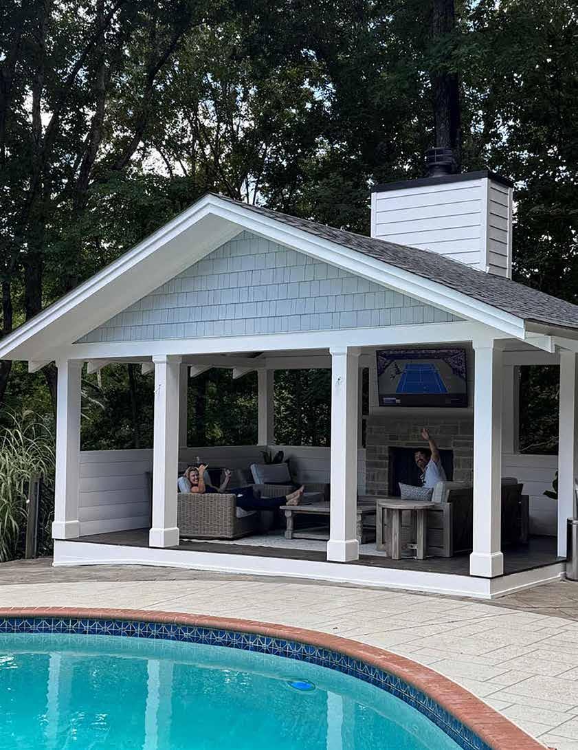 living. We extended the back porch, built a screen room, added a glass sunroom, and created a new fireplace and seating area. It’s a place where you can have coffee, host gatherings, or sit around a fire on a cool night. It completely changed how the family lives in the house.