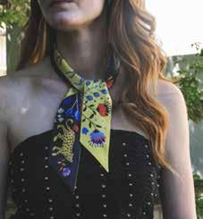 The twilly is a long narrow scarf first introduced by Hermès in the late 1930s to be worn around the neck or hair. I like to tie one around my neck and leave the knot in the back. Wrapping your handbag handle in a twilly will effortlessly elevate your look. Originally, Hermès designs were mostly equestrian scenes, a salute to the designer’s equestrian roots. Now, lucky for us, florals, color blocks, jungle animals and mythology adorn the twilly, so you can tell a story without saying a word. Isn’t that what style is, after all?