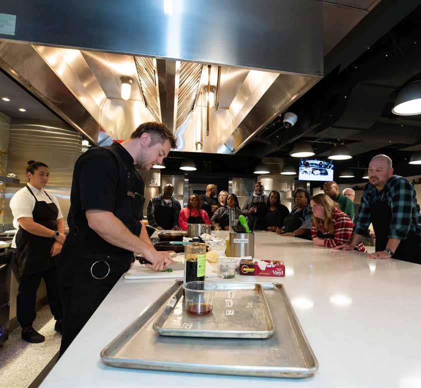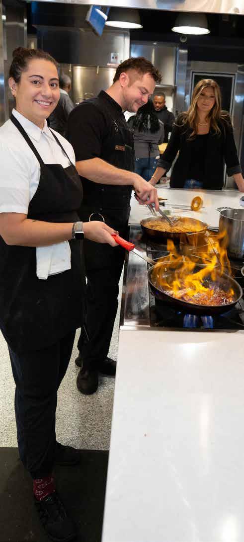 she calls “the secret sauce:” chefs who are as gifted at teaching as they are at cooking. Today, the school hums with team-building events, birthday celebrations, date nights, and corporate holiday dinners that fill nearly every slot through December.