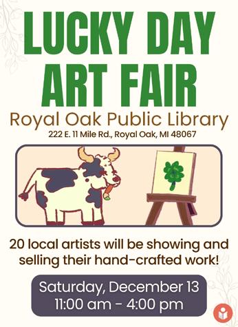 Join us for the annual Holiday Magic Marketplace located inside the Royal Oak Farmers Market. Dozens of local crafters and vendors will help you with your holiday shopping and decorating needs. Enjoy free cookies and cocoa, live entertainment, and a visit from Santa from 6:30 - 8 pm. Bring the whole family for an evening of holiday fun!